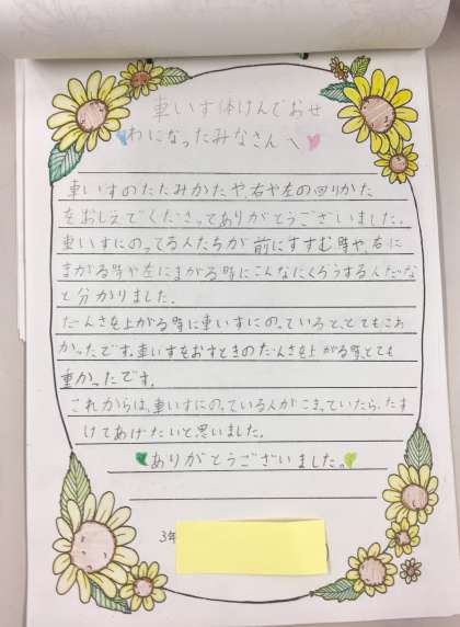 9月13日(木)お礼の手紙【車いす体験学習】