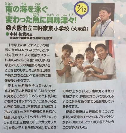 今日配布の「朝日小学生新聞」の4ページに、7月12日に行った5・6年生向けの出前授業「海とさかな」の様子が掲載されています。ぜひ、ご覧ください。(朝日新聞に学校ホームページ掲載の許可を取っています。)