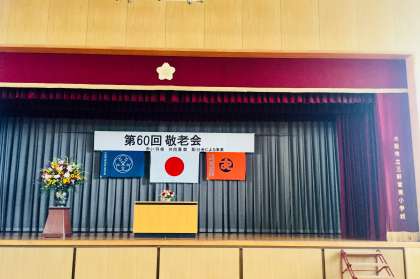 今日は、午後1時半から本校講堂にて、三軒家東地域社会福祉協議会主催によります、第60回敬老会を開催いたします。
