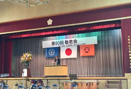 社会福祉協議会会長様の挨拶と金婚の方への記念品贈呈です。