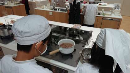お味噌汁の出汁をとります。