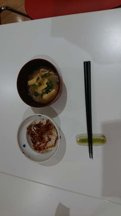 ご飯と味噌汁、ふりかけが出来上がりました。。