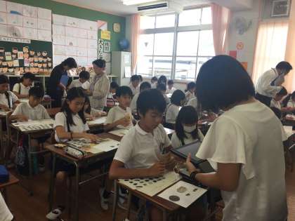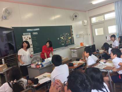 栄養教育の指導教諭に来ていただき、研究授業をしています。児童は、バランスの良い(バイキング給食にチャレンジ」をしています。児童にわかりやすいように、ICTを活用した授業をしています。