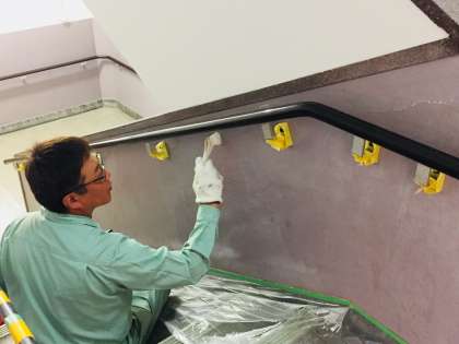 管理作業員さんが、校舎のペンキ塗りをしてくださっています。校舎を大切に使いましょう。