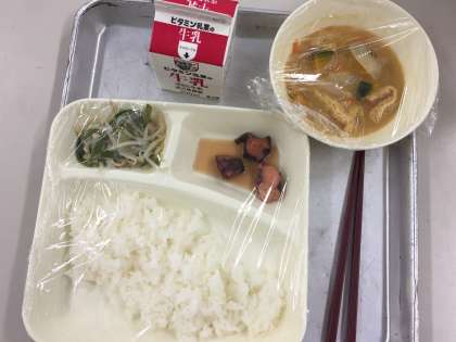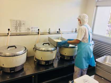 毎日、子どもたちが給食を食べる30分前に、検食をしています。また、本校は米飯を自炊しています。