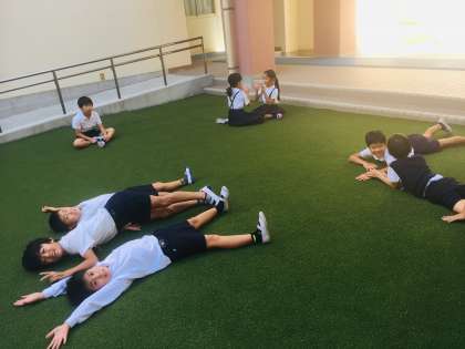 始業前の児童の様子です。のびのび広場でリラックスして過ごしています。
