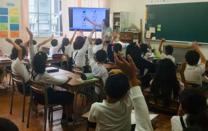 今日のイングリッシュタイムでは、「ラウンドクイズ」をしました。