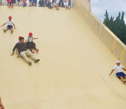 お弁当タイムの後は、大きな遊具で遊んでいる様子です。