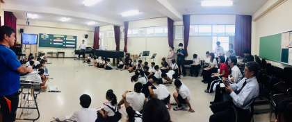 3年音楽 研究授業の様子です。大阪市教育センターの指導主事の方と文部科学省の方にも授業の様子を見ていただき、より効果的な指導方法について研修しました。