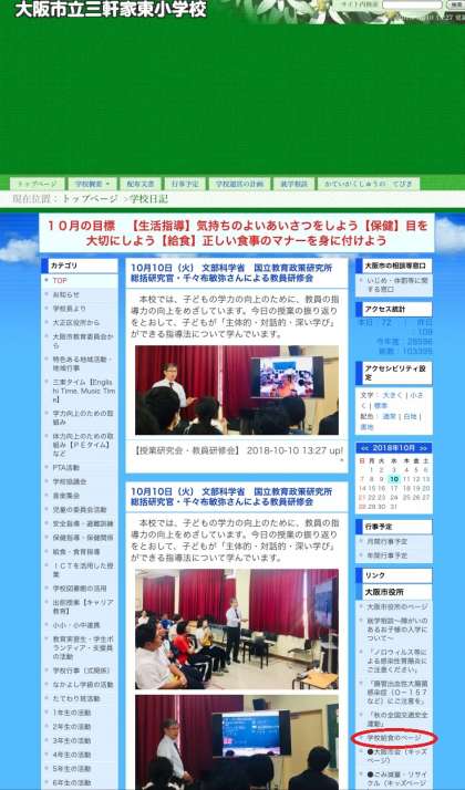 また、学校ホームページの右側のリンクに「学校給食のページ」があります。