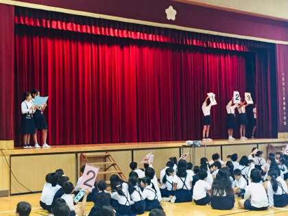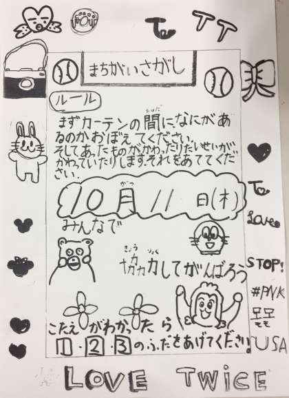 今日の児童集会は、「まちがいさがし」をしました。まちがいをみつけるために、児童は集中して参加していました。