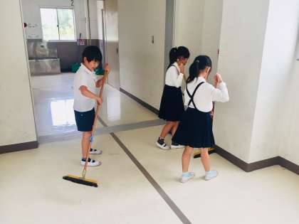 今日の児童集会で「環境委員会」から、『ひとり、ひとりが、気をつけてきれいな学校にしよう!」とメッセージがありました。清掃タイムの様子です。すみずみまで、掃除をしていました。