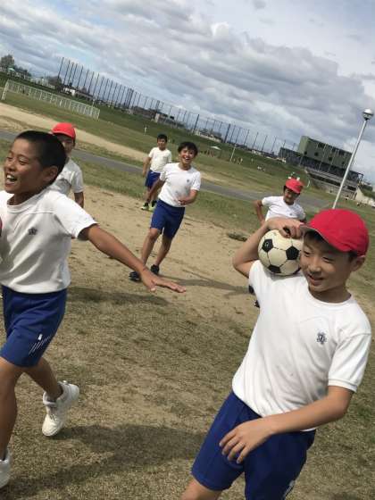 広場で、ボール遊びをしている様子です。