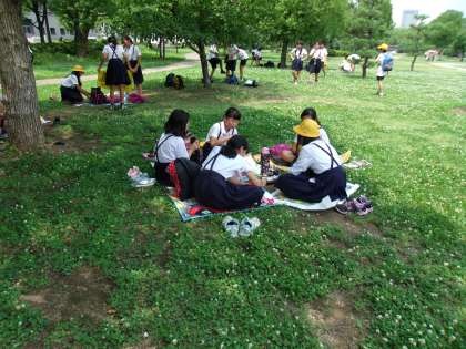 ピースおおさかの見学の後、歴史博物館の近くまで行き、お弁当を食べました。