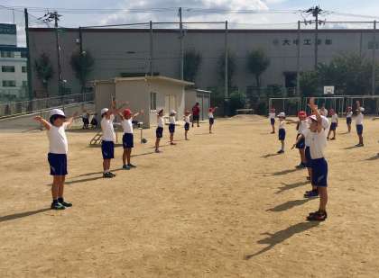3年生の体育学習の様子です。準備運動として、ラジオ体操をしていました。