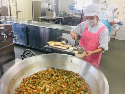 「おかかなっぱ」に入っている『だいこん葉(ば)』は、緑黄色野菜(りょくおうしょくやさい)の1つです。鉄やカルシウム、ビタミンCやカロテンなどの栄養素(えいようそ)を多くふくんでいます。
