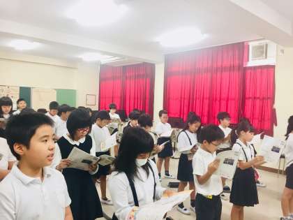 4年 音楽の学習の様子です。せんりつの重なりをかんじとりながら、『パレードほっほー』を歌っていました。