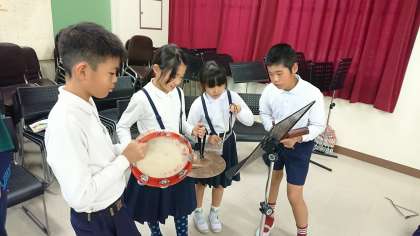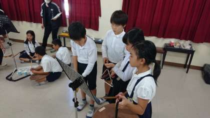 「いろいろな音のひびきを感じとろう」というめあてで、音楽づくりをしました。