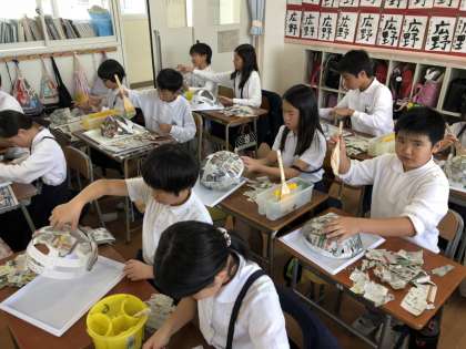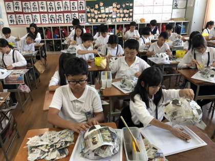 お面作りをしています。
