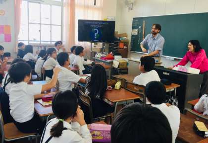 今日は学校協議会を行いました。C-NETの英語の授業を参観していただきました。
