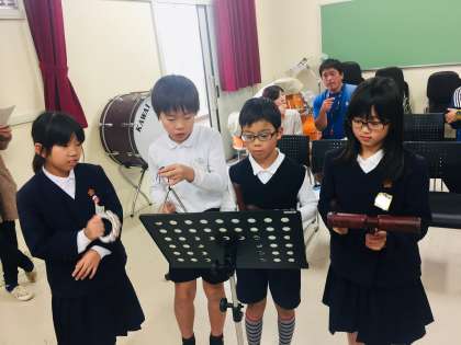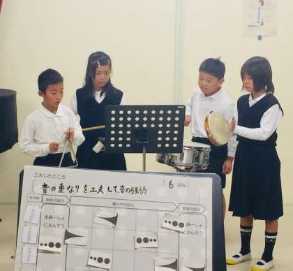4年音楽研究授業の様子です。音の組み合わせを考えて、グループの音楽を作っています。