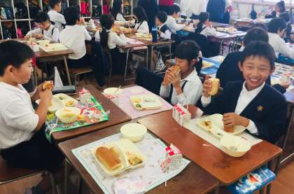 今日の給食時のユーモアタイムの様子です。放送委員会の児童が、全校放送で「ポニョ」を流していました。児童は、楽しい給食タイムをすごしていました。