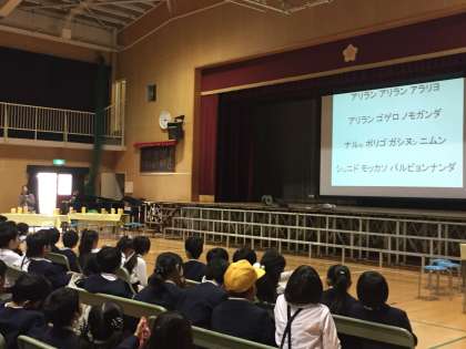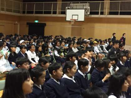 校長先生が全校児童に韓国民謡の「アリラン」を歌って紹介をしてくださいました。