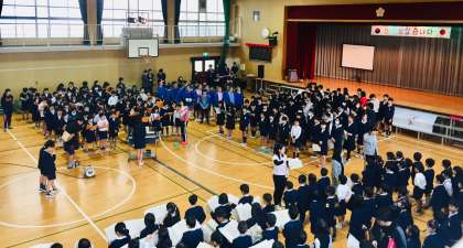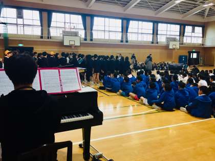今日は、全校音楽集会をしました。全校児童のきれいな歌声(ハーモニー)で、韓国から来られている小学生をかんげいしました。