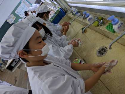きれいに手を洗い、みんなで協力して調理しました。