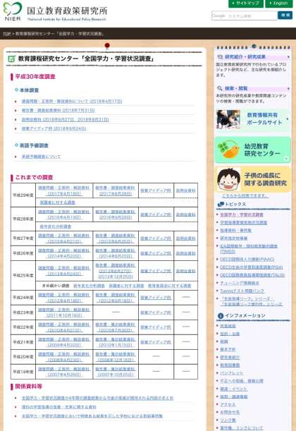 学校ホームページのリンク「文部科学省」から、今まで行われた「全国学力・学習状況調査」の問題・正答例・解説資料をご覧いただけます。ぜひ、家庭学習においてもご活用ください。