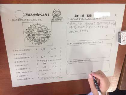 4年 食育指導の様子です。「早寝・早起き・朝ごはん」の学習をしました。