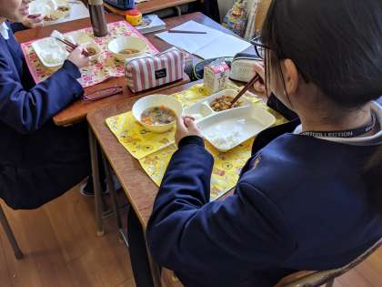 子どもたちは、「魚や〜!!」「カルシウムの多い食べ物やで〜」と、先日の食育の授業を思い出しながら給食を食べていました。