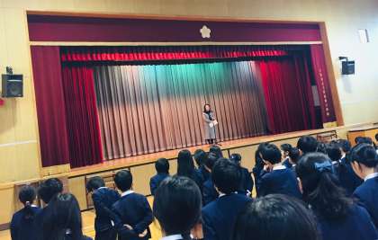 今日は、校長先生から、「今年の漢字2018(日本漢字検定協会が主催)」についてのお話がありました。多くの子どもたちが、『災』に決まったことを知っていました。子どもたちに、『一年間をふりかえり、国語辞典などを使って、自分ならどの漢字を選ぶのか決めましょう。』とお話されていました。