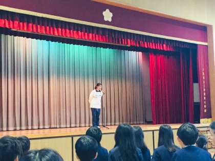 12月17日(月)児童朝会【サポーター 岩山さんの挨拶】