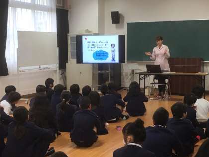 今日は薬剤師さんにきていただき、「薬の正しい使い方」の出前授業をしていただきました。