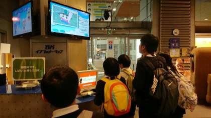 NHKを見学しています。キャラクターの「どーもくん 」 「おじゃる丸 」「 ニャンちゅう」 の紹介です。