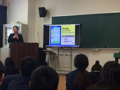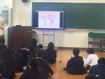 スマホを安全に使うための出前授業をしていただきました。dokomoの方と、法務省人権擁護委員の方に来ていただきました。
