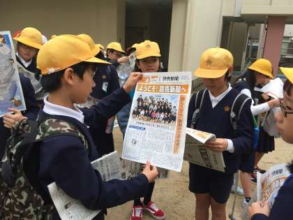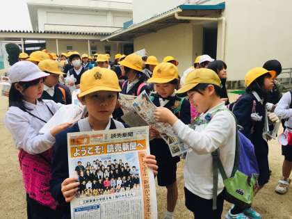子どもたちは、社会見学をした読売新聞社から自分たちの写真が載っている新聞をいただき、嬉しそうです。