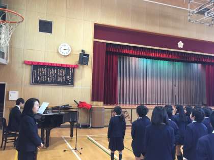 終業式の初めに、大阪市歌を斉唱し、終わりに校歌を斉唱しました。