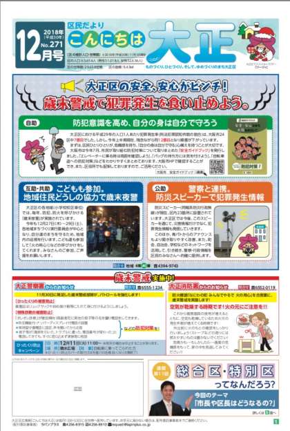 大正区 区民だより「こんにちは 大正(12月号)」の案内です。