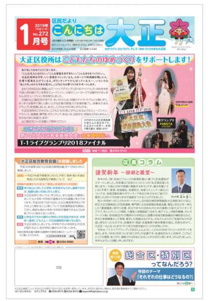 大正区 区民だより「こんにちは大正(1月号)」の案内です。