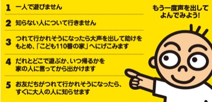 5つの約束 公開日 2019/01/07 更新日 2019/01/07 安全指導・防災 安全のための「5つの約束」です。 詳細は以下のURLよりどうぞ 閉じる https://www.police.pref.osaka.jp/05bouhan/seihan_kodomo/kodomo/kodomo03_1.html いいね(0)