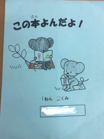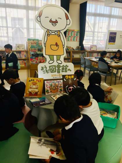 学校図書館で本を読んでいます。読書カードを活用しています。