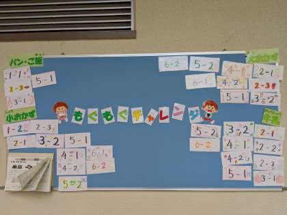 この機会に、食事の大切さを考えてほしくて、各クラスで完食を目指す「もぐもぐチャレンジ」という取り組みを行っています。「ごはん」「牛乳」「小おかず」「大おかず」それぞれ完食できた学級を給食室前の掲示板に発表しました。ごはん、牛乳、小おかず、大おかずの全部を完食した学級は、2年3組と5年1組でした!!