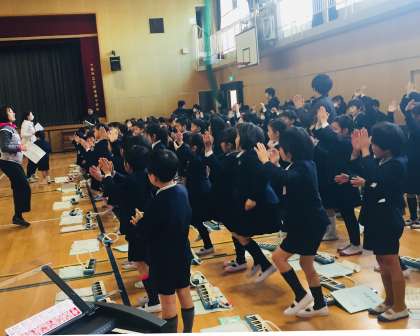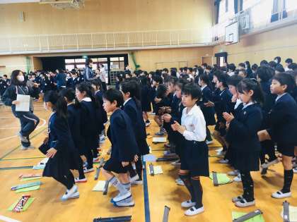 全校児童で、ボディパーカッションをしました。