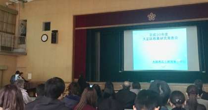大阪市立三軒家西小学校で行われた「大正区教員研究発表会」で本校の教員研修の発表をしました。