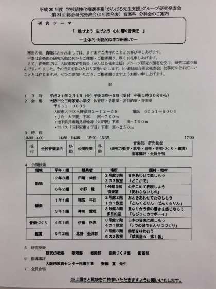 【案内】2月1日 大阪市総合研究発表会 音楽部