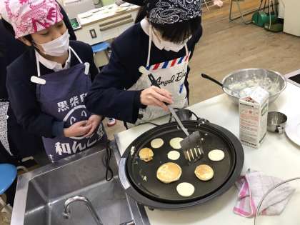 6年1組で調理実習をしました。ホットケーキを作りました。