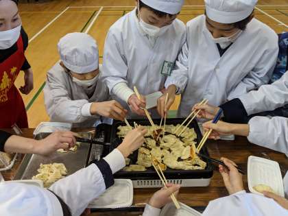 出来上がった餃子を焼き、一風堂さんのラーメンと一緒にいただきました!