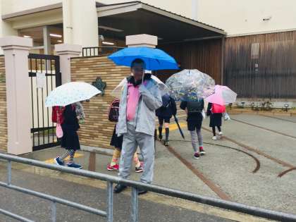 児童は、大正区区長 吉田康人さんと元気にあいさつをしています。
